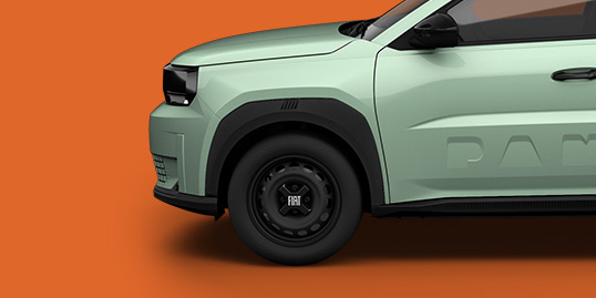 Selbstbewusst, cool und unverwechselbar: Mit 16“-Stahlfelgen mit Nabenabdeckung zieht der Grande Panda POP auf jeder Fahrt alle Blicke auf sich.
